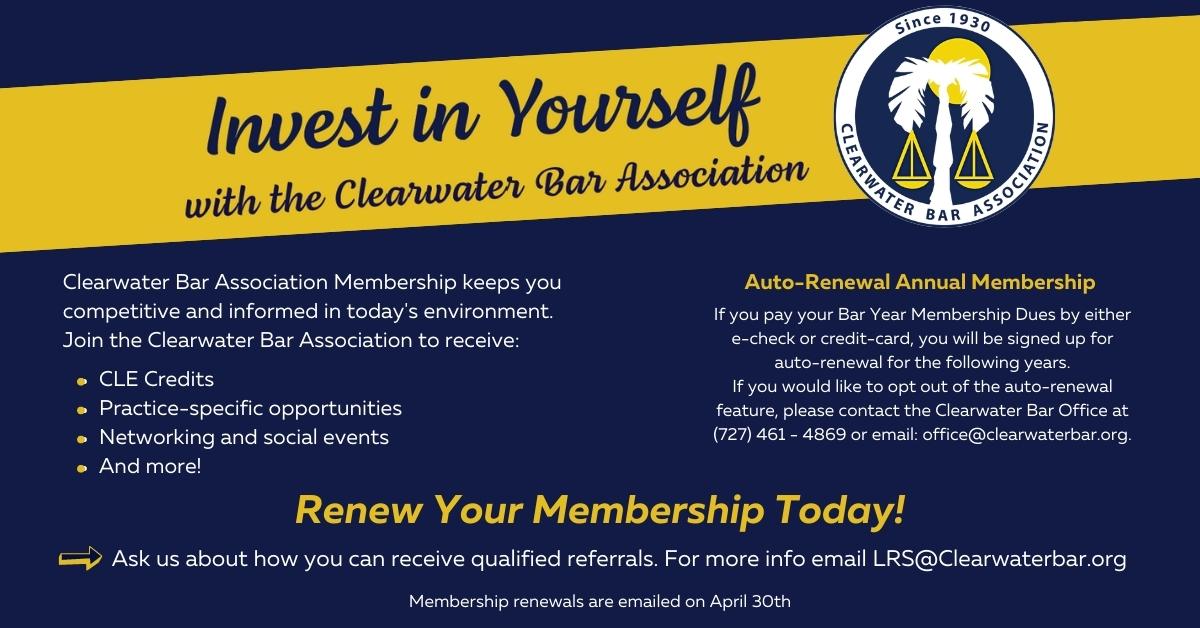 The Clearwater Bar Association membership year is July 1 through June 30.